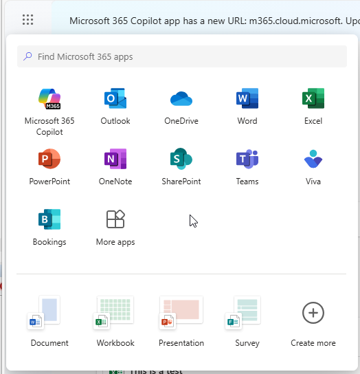 - From the Apps menu choose either OneDrive or SharePoint depending on where the document is located.