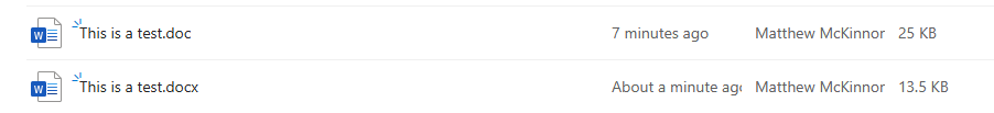 - Go back to your OneDrive or SharePoint page where the files are listed. You should now see two documents. If not refresh the page.