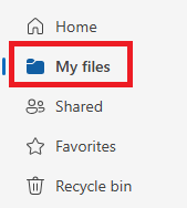 - After opening OneDrive, select My files on the left